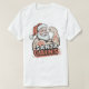 Um retrato minimalista e antiquado de Papai Noel com uma aparência parecida com Popeye. Grande texto "Ganhos de Papais noeis". Papais noeis tem tatuagens e não veste camisa. Ele está flexionando os músculos. O fundo é bege.