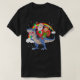 Camiseta papais noeis e elf dirigindo dinossauro trex