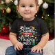 Camiseta de família linda e engraçada com a redação Dear Papais noeis, eles são os malvados em letras brancas modernas decoradas com árvores de Natal, flocos de neve, pequenos sinos de ouro, um chapéu de Papai Noel vermelho e folhas sagradas.