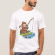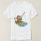 Esta camiseta de pesca de macacos, do estilo cartoon, divertida e adorável, é a captura perfeita para o seu guarda-roupa! Apresentando um macaco alegre sentado ao lado de um rio sereno, jogando alegremente sua linha com uma vara de pesca de bambu. Sua expressão alegre e palha fofa que trazem um charme lúgubre para o design. A água azul tranquila com alguns peixes coloridos nadando, completa esta encantadora cena.