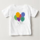 aglomerado de balões flutuantes coloridos na frente desta camisa de criança seguida de palavras de encorajamento no verso: Sorria, Giggle, Ria. palavras podem ser personalizadas no verso ou removidas.