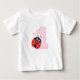 Um design bonitinho, adequado para meninas que estão fazendo um com um grande número um com um padrão de listras cor-de-rosa e uma joaninha adorável que tem corações no lugar de pontos pretos ao lado dele. Excelente para o primeiro aniversário da criança!