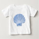 O seashell azul bonito olha grande em um tshirt do bebê. Aperfeiçoe para a praia, a viagem em um veleiro, ou em lounging ao redor a piscina vadeando do bebê. Disponível em camisetas do bebê com capas longas ou short, e creepers do bebê (uma parte), babadores e mais.