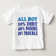 Camisa engraçada diz do que os meninos são feitos: 10% de sujeira, 40% de barulho e 50% de problemas!
