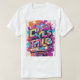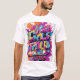 Este design de t-shirt apresenta um vídeo de jogos em píxelado e angustiado em segundo plano. O texto "Eu pausei meu jogo para estar aqui" é impresso em negrito, em cores contrastantes. O efeito geral é um tributo humorístico e nostálgico ao amor pelos jogos.
