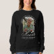 Camisola fúnebre elegante com uma grande fotografia de arco da pessoa que está sendo lembrada, a simpatia que diz "você estará sempre em nossos corações", dois corações brancos, seu nome e suas datas de nascimento/morte.
