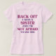 Para trás tenho uma irmã e não tenho medo de usá-la. Texto gráfico que diz fontes cor-de-rosa e roxas em negrito. Excelente se você tem uma irmã mais velha ou uma irmã mais pequena que não tem medo de te apoiar e tomar o seu lado.