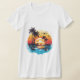 Traga a beleza do verão para onde quer que você vá com esta vibrante design de pôr do sol tropical. Apresentando palmeiras, pássaros voadores e ondas do oceano brilhantes contra um pôr do sol laranja e amarelo ousado, este trabalho de arte captura a vibração relaxante da ilha. Perfeito para amantes de praia, viajantes, surfistas, e qualquer um que sonha com o paraíso. Excelente para t-shirts, capuzes, autocolantes, canecas e arte de muros.
