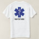 T-shirt paramédica dos serviços médicos de emergência. Adicionar um nome ou outro texto. Escolha o estilo e a cor no menu de opções.