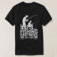 Esta design apresenta uma camiseta preta com um gráfico de duas pessoas de pesca. Uma pessoa está de pé e a outra está sentada num banco. Abaixo do gráfico está o texto "FISHING PARTNERS" acima de "for life" em caracteres menores.