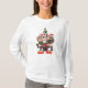 Papai Noel comemora alegremente entre dois vivos elfos, exclamando a frase 'Partido Claus'. Mergulhe no espírito festivo e junte-se ao mérito desse evento encantador