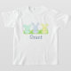Esta camisa adorável pode ser personalizada com o nome do seu filho. Apresenta um trio de coelhos pastéis e aquosos com rabos fofinhos e fofinhos sentados na grama. Este design funciona melhor com camisa branca ou impressão vívida.