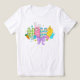 Esta design de camiseta festiva com tema de Páscoa mostra a palavra "Mama" em letras grandes e coloridas. Cada letra é exclusivamente decorada com diferentes padrões e elementos associados à Páscoa. O "M" é verde com um padrão controlado e uma cenoura ao lado dele. O primeiro "A" é cor-de-rosa com bolinhas brancas e tem orelhas de coelho e rosto. O segundo "M" é decorado com um padrão ziguezague em cores pastéis. O segundo "A" é amarelo com bolinhas brancas e pintinho. A design é completada com um arco roxo grande no centro e vários pequenos elementos decorativos como flores, estrelas e um coelho azul. Esta design divertida e vibrante é perfeita para celebrar a Páscoa com um toque de amor materno.