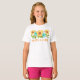 Uma t-shirt bonita com um sistema floral amarelo e azul com o texto "Felz pascoa"