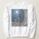 Caleidoscópio colorido - A vida na cidade. Pássaro púrpura de Tiki na cidade sob a lua de cheio