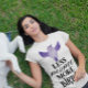 Camiseta Pássaro giro - Pássaro roxo com slogan motivaciona