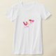 Um pássaro cegonha rosa giro com uma corda de corações de balão amarrada em volta do tornozelo.