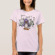 Pássaro roxo Whimsical segurando uma T Shirt fofa branca. Clique em Personalizar para adicionar texto. Esta imagem está disponível em muitos produtos da minha galeria. Visite o tesouro dos olhos sorrindo para ver mais fotografias de flores e natureza e cartões e presentes de arte digitais.