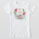 Camisa de verão para uma garota com um lindo flamingo bebê, flores tropicais rosa e folhas e água em cores pastel. Personalize facilmente o texto. - Kate Eden Art