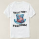 Um na moda que adorava as palavras amigos e família, liberdade junto com um design de bandeira americana. Simbolizando unidade, patriotismo, e amor pelo país.