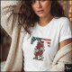 This initial 'T' is special for its powerful blend of Americana, nature, and vintage style. The letter is filled with a cracked, distressed American flag pattern, symbolizing classic, weathered patriotism. This bold initial is encircled by a wreath of vibrant red roses and peaceful white daisies. The design is perfect for Fourth of July apparel, personalized patriotic gifts, or vintage t-shirt graphics.