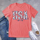 Mostre o seu orgulho patriótico com uma teia vermelha suave que combina Americana clássica com uma divertida reviravolta floral. Com letras ousadas "EUA" cheias de flores vermelhas, brancas e azuis e "EST. 1776" embaixo, esta camisa é perfeita para churrascos de verão, fogos de artifício e celebração da liberdade no estilo.