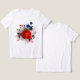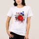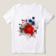 A striking floral arrangement featuring a bold red rose at the center, surrounded by soft white blossoms and deep blue rosebuds. Lush green foliage and textured red accents complete the composition, creating a balanced red, white, and blue palette. This elegant bouquet blends classic botanical beauty with a subtle patriotic theme, perfect for celebrations, holidays, and decorative designs.