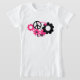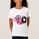 Camiseta Paz, Amor e Flores, rosa quente e preto
