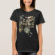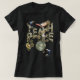 Design de paz do Ensino Steampunk com esculturas Steampunk Douradas e de latão em denim azul com velhos relógios, rodas, correntes e golfinhos