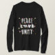 Embrace a poderosa mensagem de "Peace Love Unity" com esta inspiradora design. Simbolizando harmonia, compaixão, e unidade, esta trabalho de arte fala sobre a importância da conexão e da positividade no mundo. Perfeito para espalhar amor e união.