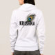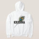 O logótipo contém o nome "Krishna" em caracteres negros a negrito e tridimensionais. Uma pena de pavão vibrante, um símbolo frequentemente associado a Lord Krishna, estende-se do "K" em nome. Os detalhes intrincados da pena e as cores ricas contrastam lindamente com a simplicidade da inscrição, criando uma design visualmente marcante e espiritualmente evocativa.