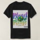 A design de camiseta "Plante Planeta" apresenta um globo estilizado com vários símbolos e motivos ecológicos, como folhas, flechas de reciclagem e ícones de energia renovável. O mundo está cercado pela frase "Penhor Planeta" em uma fonte moderna e limpa. A design transmite uma mensagem de consciência ambiental e um compromisso com uma vida sustentável.