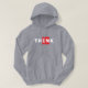 Pense fora da caixa. Simples design de texto com a palavra PENSAR com as letras IN dentro a red quadrado representando a BOX. Para pensadores livres.