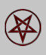 Pentagrama vermelho, invertido, texturizado em círculo, sobre fundo preto. Símbolo oculto. 666