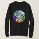 Pentagrama luminoso desenhado artificialmente com cinco elementos mágicos, água, terra, fogo, astral, ar sobre fundo negro. Pentagrama Wiccan. Wicca