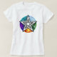 Pentagrama luminoso desenhado artificialmente com cinco elementos mágicos, água, terra, fogo, astral, ar sobre fundo negro. Pentagrama Wiccan. Wicca