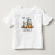 Pequenos Medos - Skeleton & Ghost Halloween Duo Toddler T-shirt Um esqueleto alegre e um fantasma de olhos largos lado a lado, cada um acompanhado por pingos brilhantes que iluminam as suas expressões lúdicas. Um morcego solteiro cai acima, adicionando um toque de charme assustador, enquanto letras maiúsculas arrojadas soletram "HALLOWEEN" embaixo da cena. A design combina a beleza com o espírito sazonal, perfeito para capturar a alegria e o capricho do Dia das Bruxas através de amistosos e festivos.