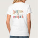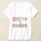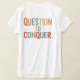 A design da camiseta apresenta a frase "Pergunta para conquistar" em caracteres negros e multicoloridos. As cores são vibrantes e chamativas, criando um sentimento dinâmico e enérgico. O texto está arranjado de forma a sugerir um desafio ou uma quebra-cabeça a ser resolvido, fazer-o de uma escolha perfeita para aqueles que desfrutam de perseguições intelectuais ou que superam obstáculos. O design é limpo e minimalista, permitindo que o texto em negrito seja o ponto focal principal.