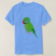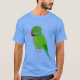 Um desenho de vetor digital de um bonitinho periquito índio. É verde. Ele está segurando uma pata. Muito fofo