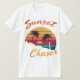 A t-shirt apresenta a frase "Sunset Chaser" num esquema de cores único e gradiente. As cores podem passar de laranja e vermelho profundo a pinks e roxas macios, imitando as matizes vibrantes de um pôr do sol real. Esta design é perfeita para qualquer um que adora perseguir a beleza do pôr do sol e as aventuras que promete.