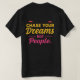 Esta camiseta vibrante apresenta um design ousado e abstrato com a inspiradora mensagem "Chase Your Dreams, Not Pessoas." O texto é escrito em uma fonte multicolor, criando uma declaração visualmente impressionante e elevatória. A design encoraja os indivíduos a perseguir suas paixões e ambições, preferencialmentes que se focam em perseguir outros.