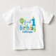 Camiseta do Primeiro Aniversário em azul e verde personalizada com o seu nome