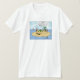 Esta camiseta cómico tem uns desenhos animados de um Turner de madeira encalhado em uma ilha abandonada. Usou as duas palmeiras do coco para formar um torno do treadle e é feito bacias e placas fora delas. Encontre o que acontece quando vê um barco na distância.