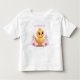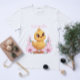 Sua busca pela camiseta básica infantil perfeita chegou ao fim! Esta camiseta de algodão ultra-suave apresenta um adorável pintinho cercado por flores delicadas, criando um design doce e divertido. Personalize-a com o nome da criança para criar uma peça única e especial que ela vai adorar usar.