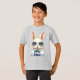 Bonita legal Tigela Azul e Óculos Solares Ilustrados Coelhinho de Páscoa. Excelente Boys Páscoa T-Shirt, Personalize com o nome do seu filho. Bunny Illustration apresenta um coelho bege legal com vidro solar aviador e gravata azul.