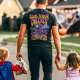 Vintage 60 Psicodélica voando Pessoas roxas comem chá monstro. Camiseta gráfica excelente para o Halloween. Adicione seu próprio nome ao design.