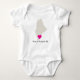 Adorável design do orgulho do estado de tendências para o seu bebê com uma silhueta de mapa Maine e coração móvel que você pode colocar em qualquer lugar para mostrar onde seu bebê foi feito no estado de Maine! Personalize com qualquer texto desejado. Clique no botão Personalizar para mover o coração e/ou alterar o texto.