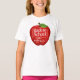 Personalize uma camiseta de Volta às Aulas com estilo com uma grande maçã vermelha para o professor. Leia, escreva, aprenda, descubra, explore, pense, raciocine, questione e estude.
