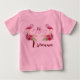 Personalize Flamingo Hibisco Rosa Menina Primeiro Aniversário - Feliz 1º Aniversário Camiseta para menina - com saudação de aniversário, flamingos, hibisco com folhagem e o nome da aniversariante em letras extravagantes em negrito. NOTA: O campo de nome neste produto é personalizável - Para editar basta clicar em PERSONALIZAR para revelar o campo de nome - Em seguida, substitua o nome padrão pelo do seu filho ou destinatário.