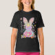 Colorful personalized Easter bunny shirt featuring custom name with whimsical rainbow bunny design, hearts, flowers, and Easter eggs. Perfect for little girls' Easter celebrations, egg hunts, spring festivals, holiday photoshoots, and Easter Sunday church. Simply add your child's name to create a magical, one-of-a-kind Easter outfit.